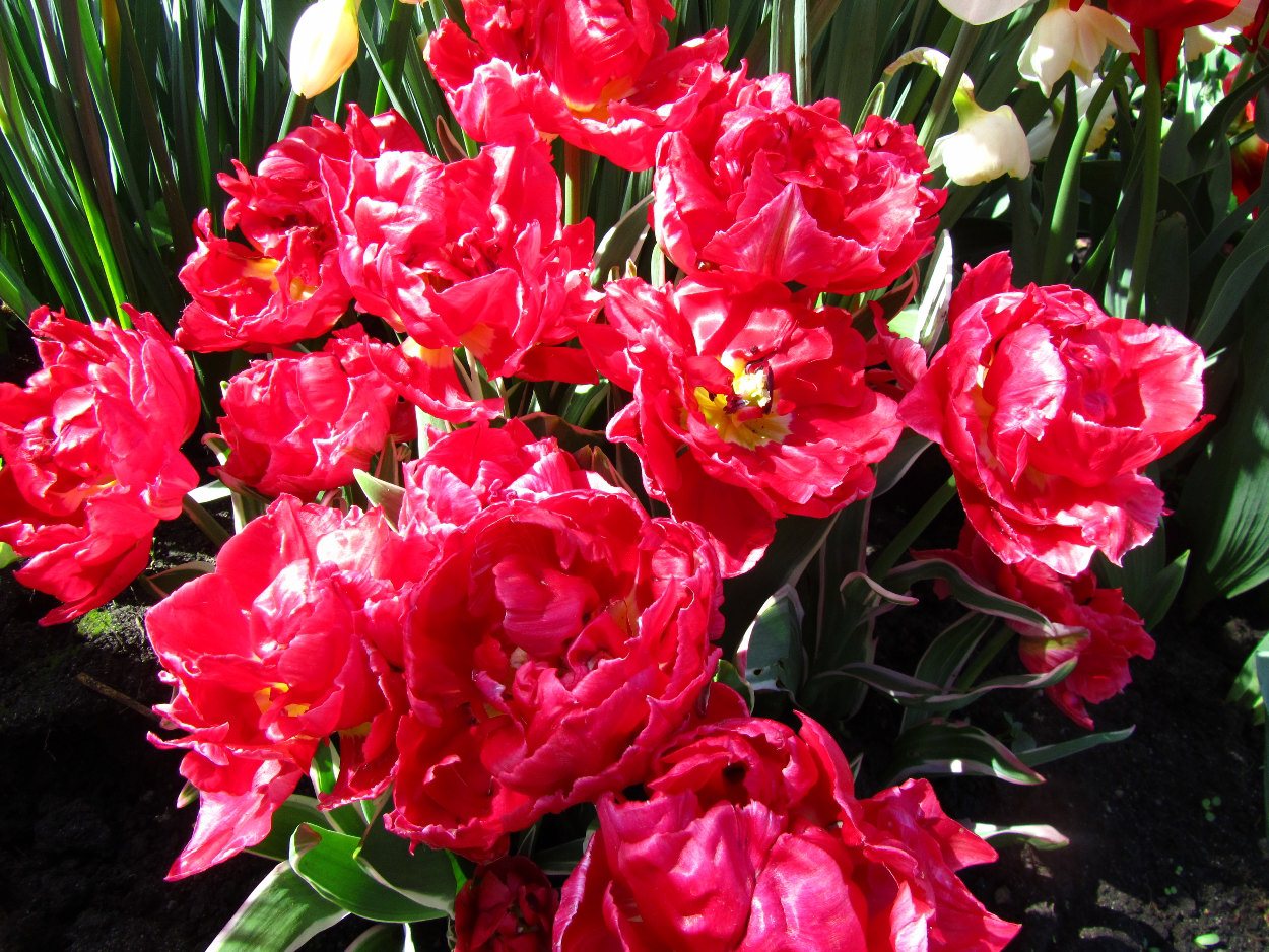 Foto Databank Tulpen D: Eternal Flame 2 Registratie : 10-02-1997 Registrant: Fa. De Geus-Vriend Kweker: Fa. De Geus-Vriend Kleur omschrijving : De tulp Eternal Flame dankt zijn naam aan het vlamachtige patroon dat zichtbaar is op de bloemblaadjes. Deze dubbele vroege tulp heeft rood- tot rozegekleurde bloemen met een groene "vlam" vorm aan de onderkant van de bloemblaadjes, wat waarschijnlijk de inspiratie voor de naam was. De bladeren van de tulp zijn grijsgroen en hebben een roze rand, wat bijdraagt aan het opvallende uiterlijk Hoogte 30 cm