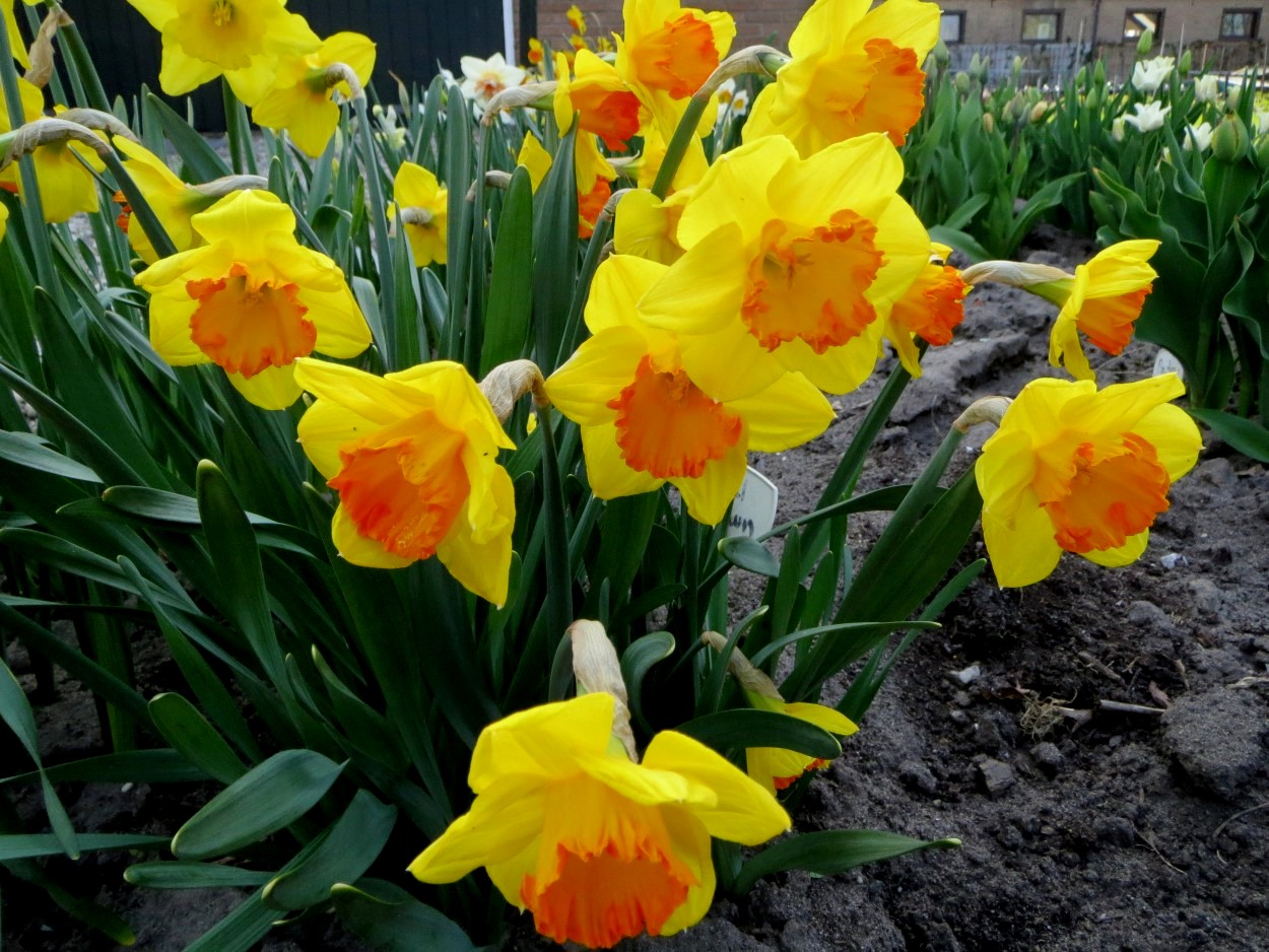 Foto Databank Narcis C: Coral Crown 1 Registratie : 27-09-2005 Registrant:Leenen Innovation B.V. Beschrijving : De narcis 'Coral Crown' is een grootkronige narcis die zich onderscheidt door zijn goudgele bloemblaadjes en een opvallende, sterk gerafelde oranje kroon.De naam 'Coral Crown' verwijst naar de koraalachtige structuur en kleur van de kroon, die doet denken aan de vorm en tinten van koraal. Hoogte 40 cm