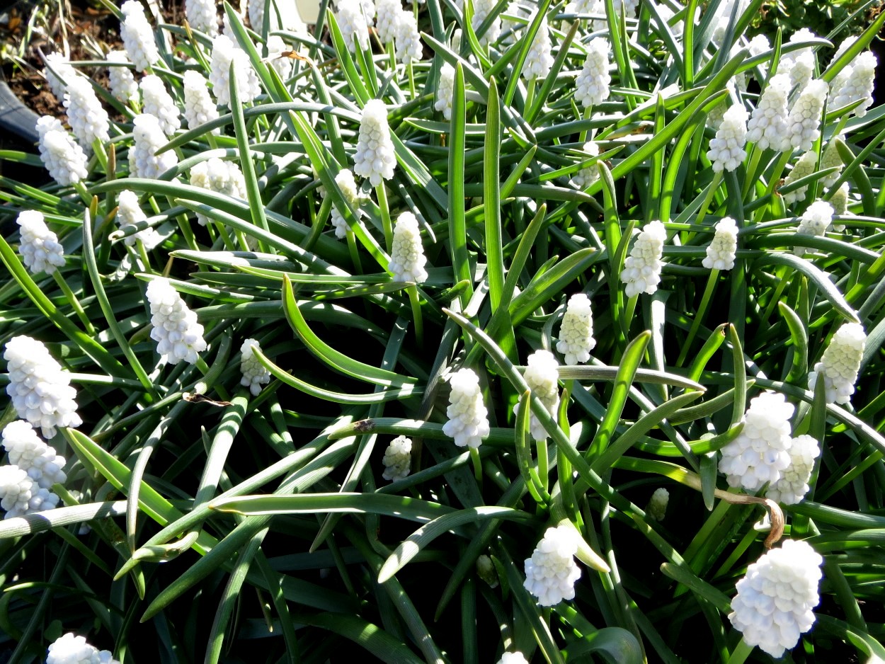 Foto Databank Bloembollen M: Muscari Siberian Tiger 2 Registratie: 26-09-2005 Registrant: Gebr. Ruyter Kweker: J. Ruyter Beschrijving: Samenvatting kleur: wit N155A. Bloempjes wit N155A met zweem van violetblauw 95B. Steel aan basis bijna wit naar top toe lichtgroen. Blad middengroen. In eerste fase bloei geheel wit. Hoogte 12 cm