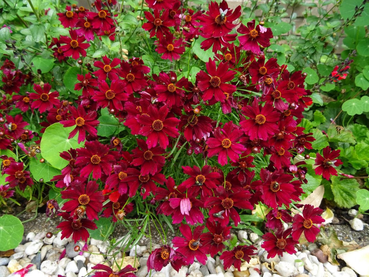 tot in de herfst.Deze prachtige Coreopsis produceert massa's robijnrode,